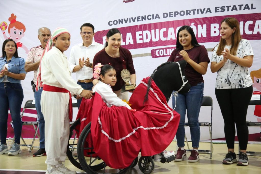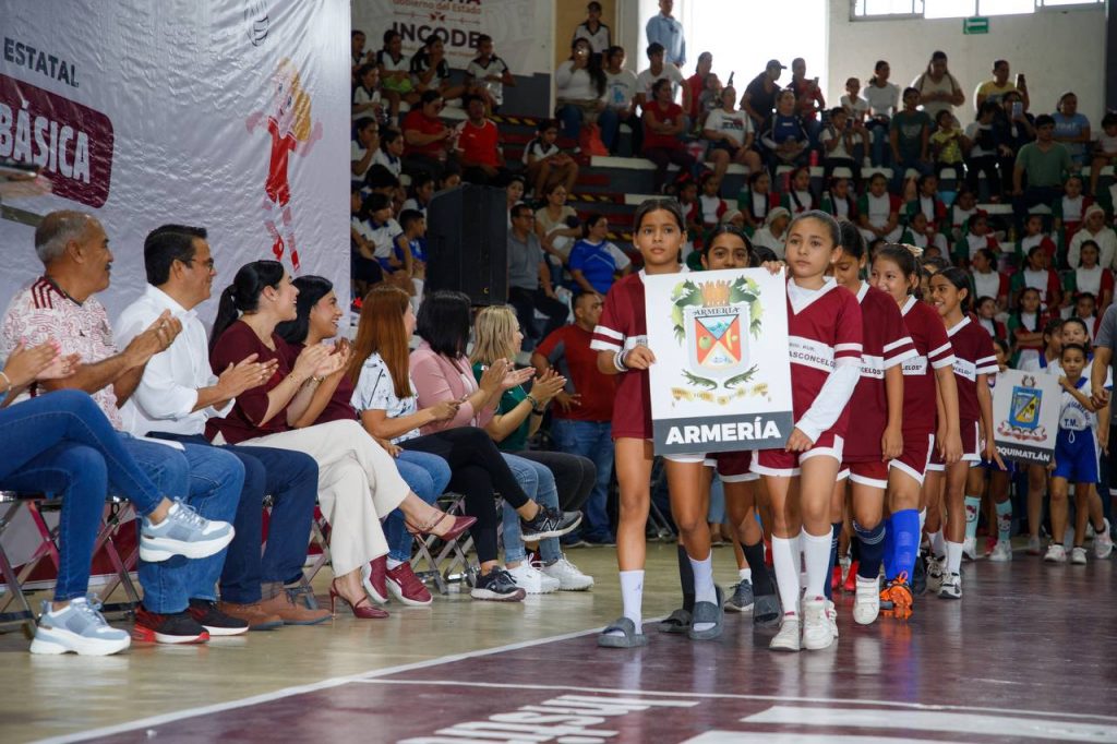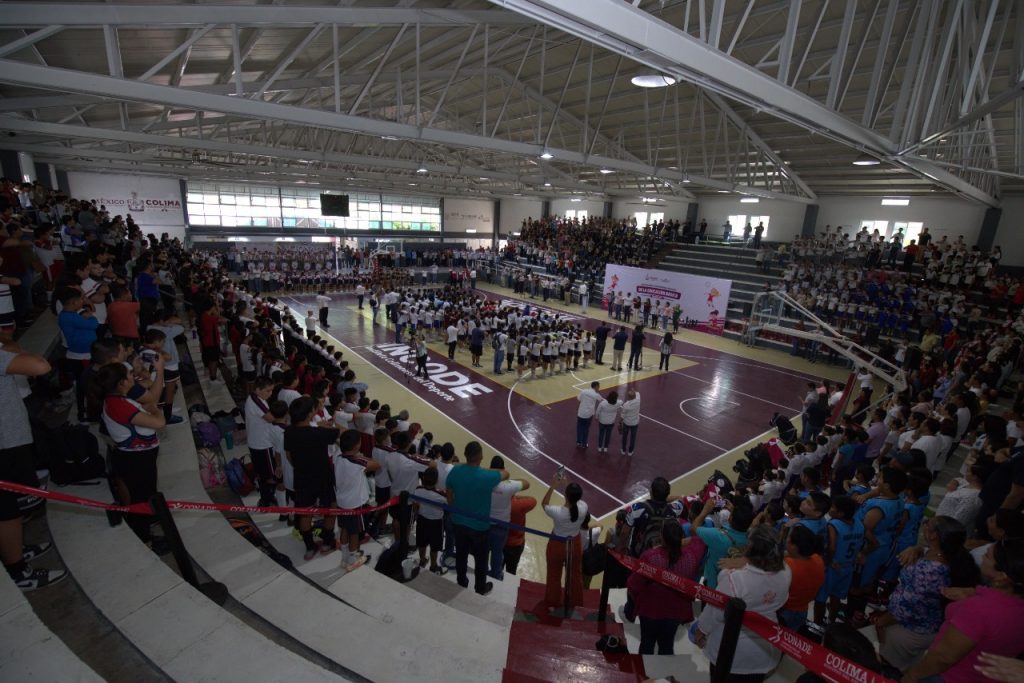 Titulares de los Poderes Ejecutivo, Legislativo y Judicial del estado de Colima, inauguraron la Convivencia Deportiva de la Educación Básica 2024, en la que participan más de 2,300 personas, entre estudiantes de primaria de los 10 municipios, entrenadoras y entrenadores, auxiliares, personal docente, arbitral y de apoyo.