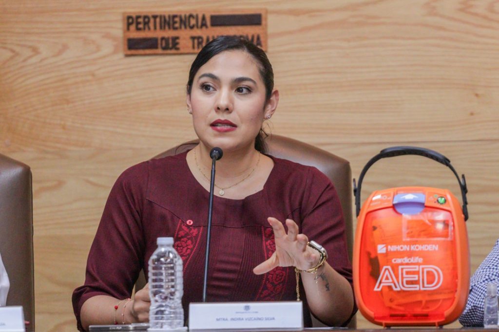 Indira Vizcaíno agradeció a la Universidad de Colima por sumarse a este proyecto del Gobierno estatal, “que busca hacer de nuestro estado, el primer estado cardioprotegido del país”.