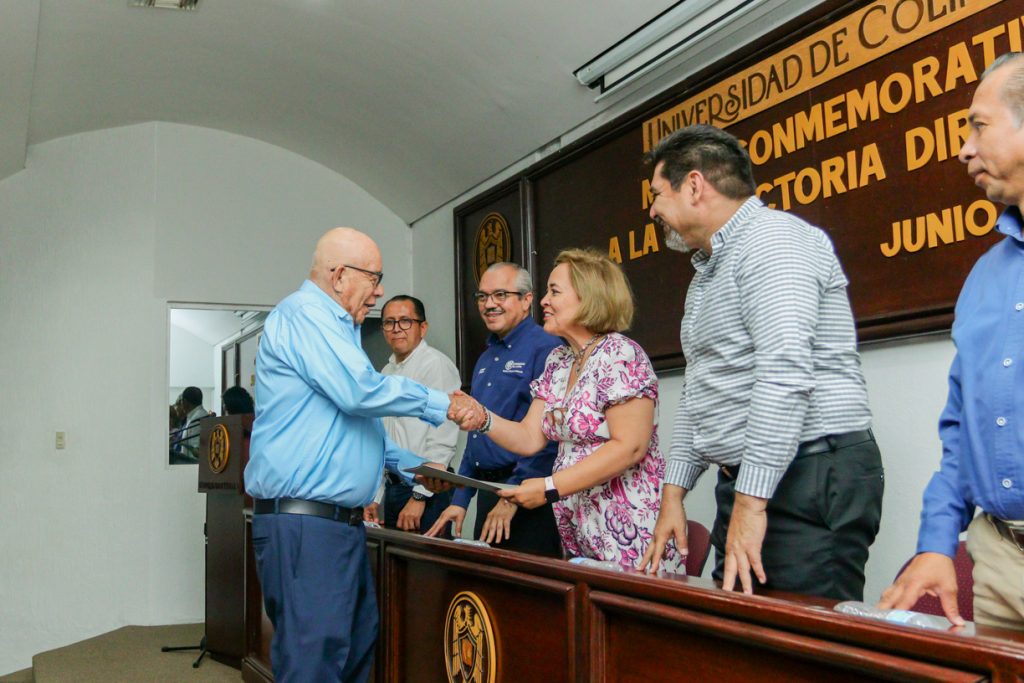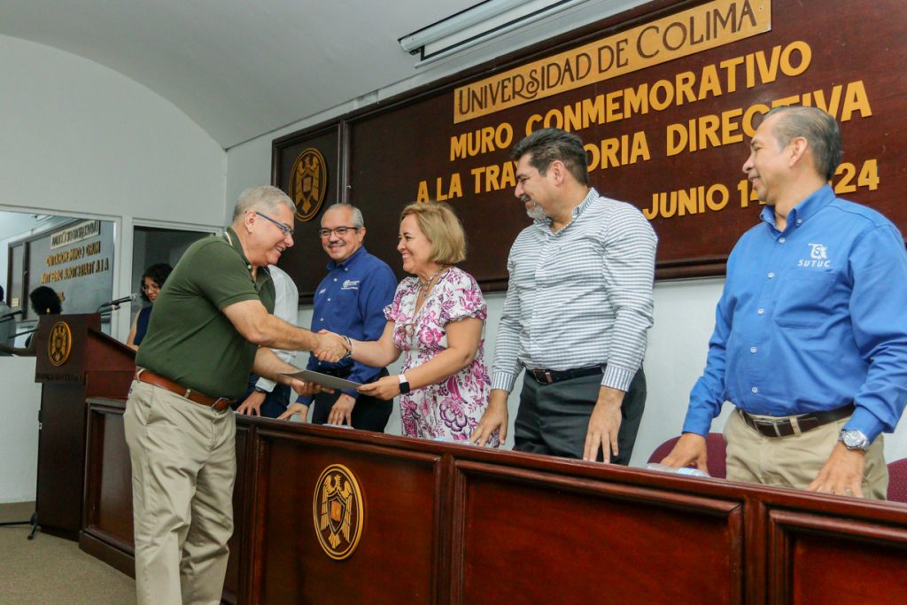 En el presídium estuvieron, además, Mario de Anda, director general de Educación Superior; Juan Diego Gaytán, delegado en Colima; Luis Enrique Zamorano, secretario general del SUTUC y Camilo García, presidente de la FEC.
