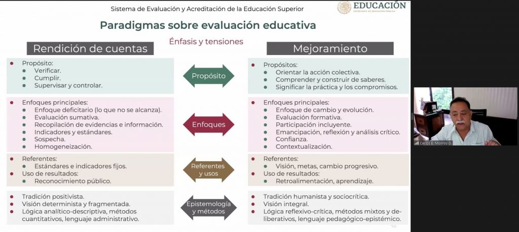 Por último, el doctor Monroy Galindo compartió algunas conclusiones derivadas de la autoevaluación, como son: implementar esquemas educativos de evaluación formativa, fortalecer la colaboración interinstitucional, promover la homogeneización curricular, favorecer la investigación aplicada, fomentar la participación estudiantil e integrar la nueva tecnología, entre otros.