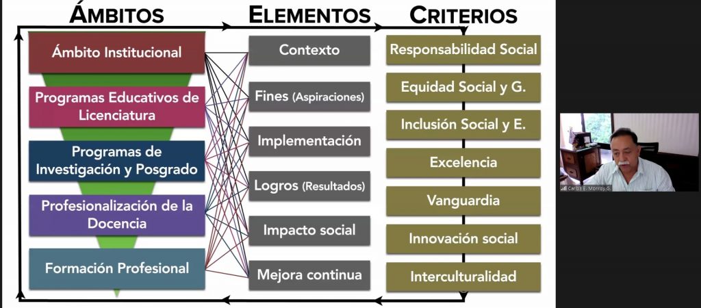 La evaluación se realizó con los siguientes criterios: responsabilidad social, equidad y género, inclusión social, excelencia, vanguardia, innovación social e interculturalidad. “En esta ocasión hubo 420 instituciones en México que completaron el proceso de evaluación y el pasado 31 de mayo salió la nueva convocatoria para todos aquellos que no se evaluaron, pues ya será de manera obligatoria”.