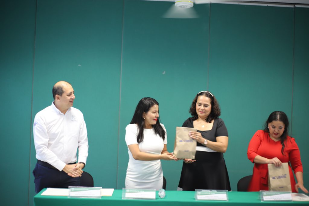 La ceremonia de firma, realizada en las instalaciones de la UdeC, contó con la presencia de Ana María Gallardo Vázquez, delegada universitaria en Manzanillo, en representación de Rector Christian Torres Ortiz Zermeño; Inés Barrales Anguiano, subgerente de Finanzas; Yolanda Chávez Sánchez, subgerente de Logística (ambas de Evergreen Shipping Agency México S. A. de C. V.), así como de Noé López Alvarado, director de la Facultad de Comercio Exterior.