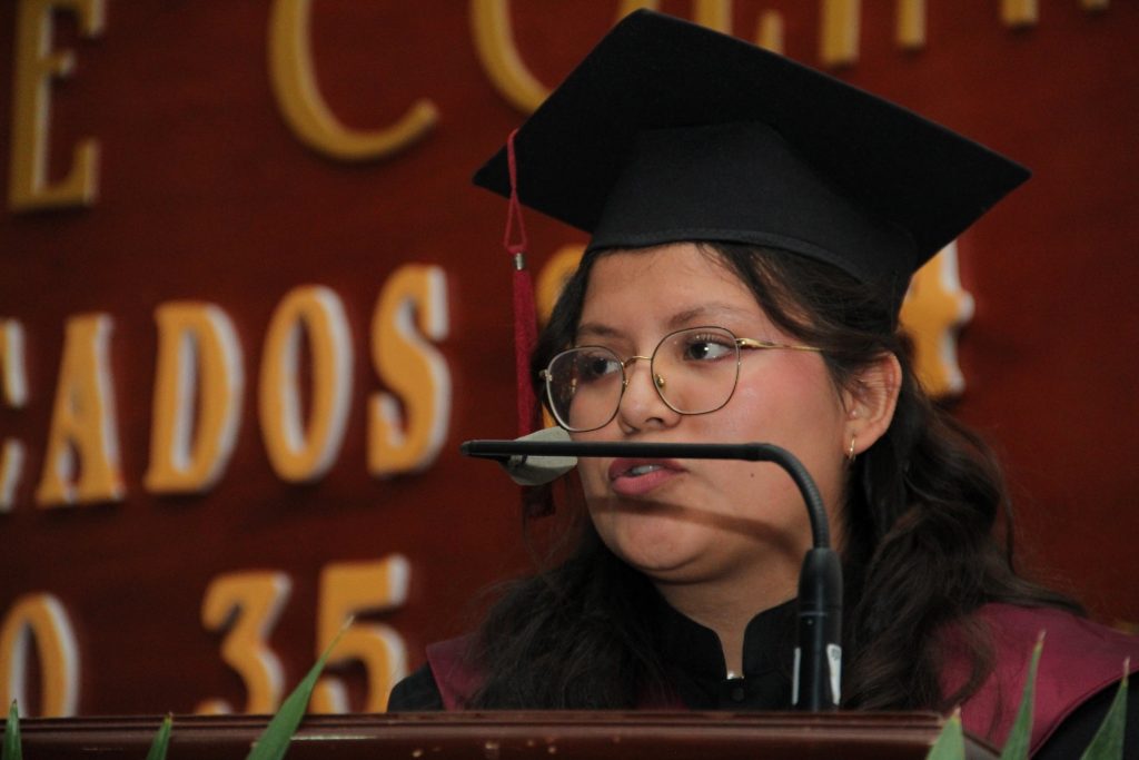Comentó que después de tanto tiempo, por fin llegó el día que tanto esperaban. “Veíamos lejano este día; rogamos que fuera pronto, tachamos días en el calendario, contamos horas, minutos, segundos y ahora estamos aquí. Es nostálgico, porque significa dejar a amistades inspiradoras y docentes que fueron nuestros guías, personas que dieron forma a nuestras vidas de forma permanente”.
