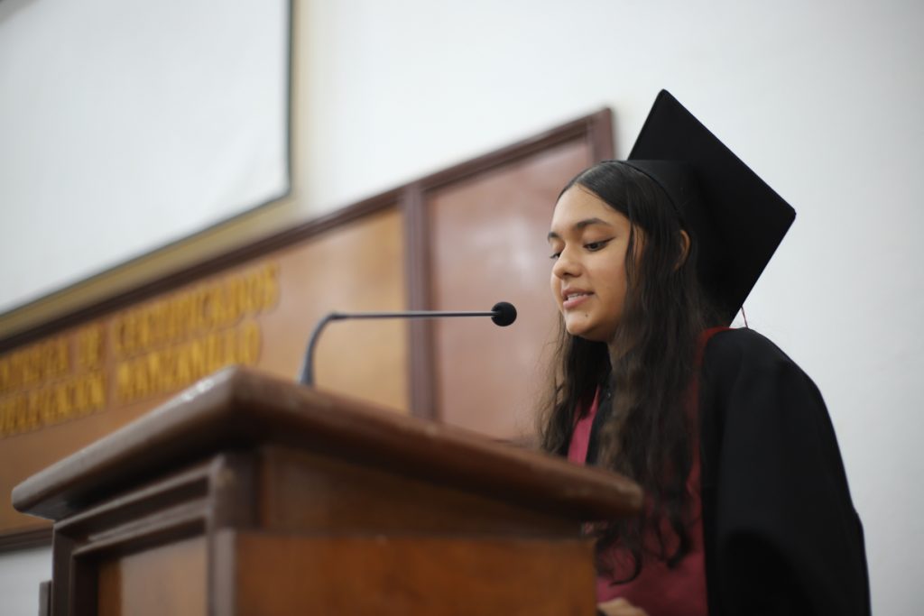 Ángeles Gabriela Sandoval Aviña, directora del plantel, destacó en su discurso que esta generación había completado “un viaje extraordinario”, reconociendo el potencial y la gratitud de los estudiantes. “Han aprendido lecciones valiosas y formado amistades que van a durar toda la vida. Este logro también pertenece a las personas que les rodean, docentes y sus familias, quienes los guiaron e inspiraron en cada paso del camino”.