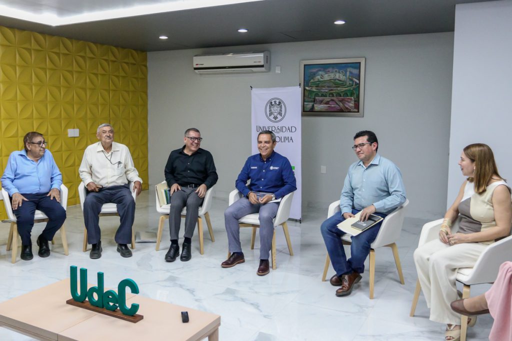 En el encuentro también estuvieron, por parte de la UdeC, Carlos Ramírez, coordinador general de Extensión; Omelina Araiza, directora del Archivo Histórico y Francisco Coello, secretario privado de Rectoría.