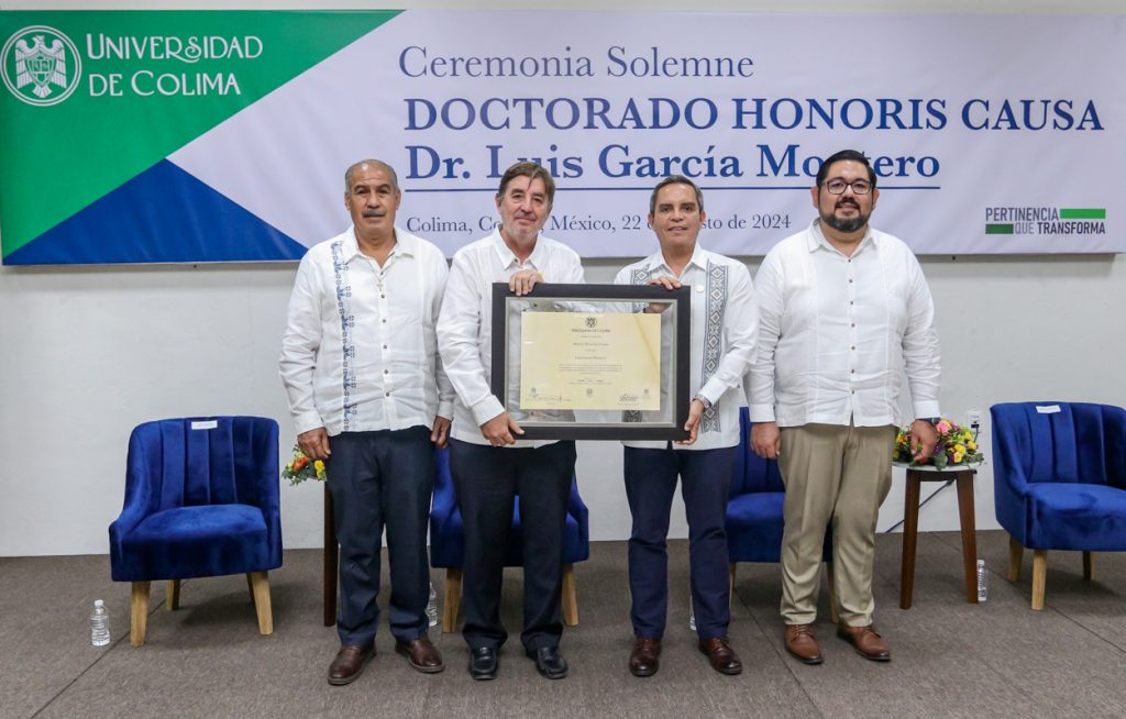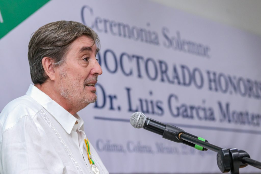 En una ceremonia solemne, Christian Jorge Torres Ortiz Zermeño, Rector de la Universidad de Colima, entregó el grado de Doctor Honoris Causa al poeta y escritor español Luis García Montero “por la calidad de su obra literaria, que de manera excepcional ayuda a comprender la condición humana en el devenir de la historia”.