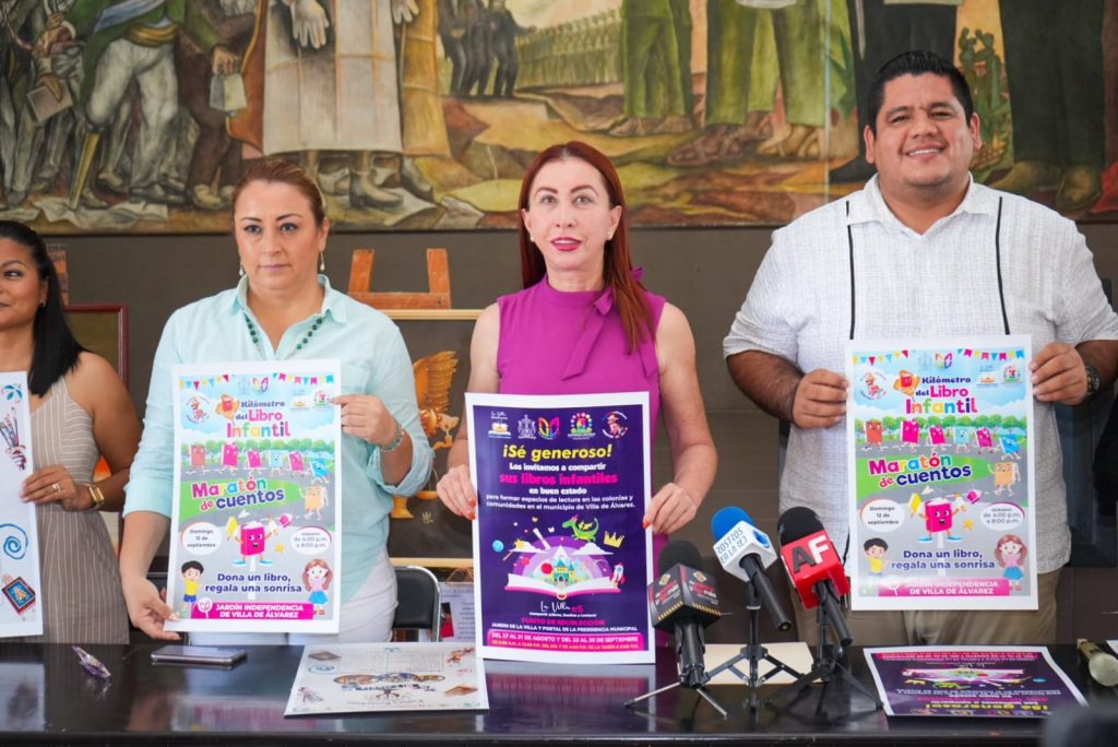 Otra actividad es “El Kilómetro del Libro Infantil”, el cual se realizará el 12 de septiembre en el jardín principal de Villa de Álvarez, consistente en la donación de libros para darles una segunda vida a los que se tienen en casa y no se usan porque ya se leyeron, programa que se desprende de la estrategia “Villa de Álvarez municipio lector”.