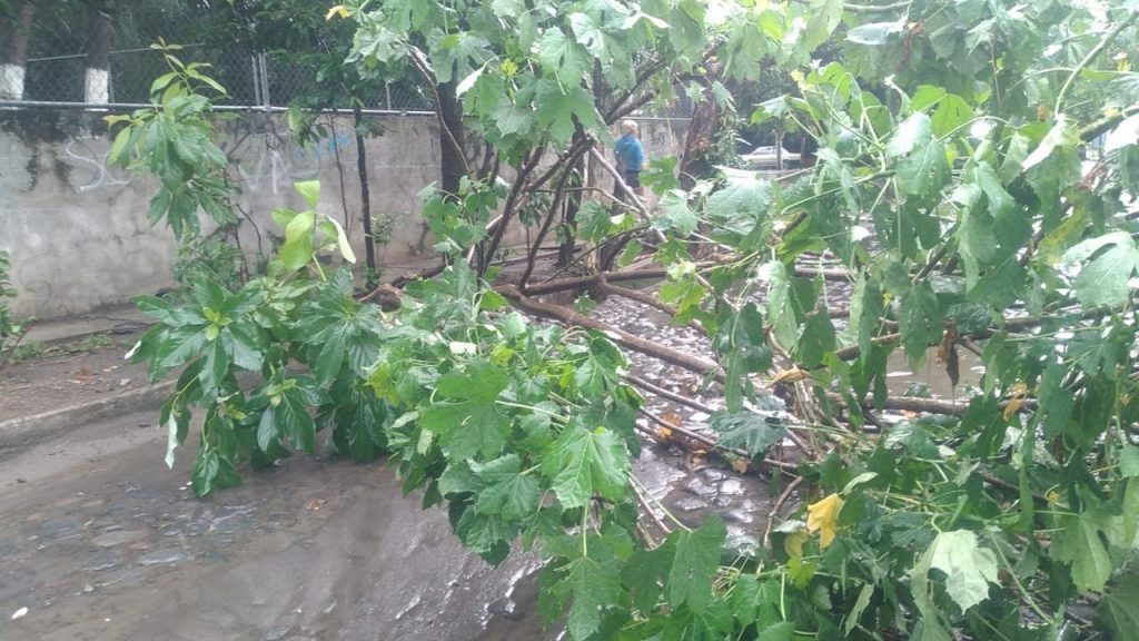 El árbol caído se registró en avenida Gaviotas, entre las calles Águilas y Halcones de la colonia Juan José Ríos I, el cual está siendo retirado por personal del área de Servicios Públicos.