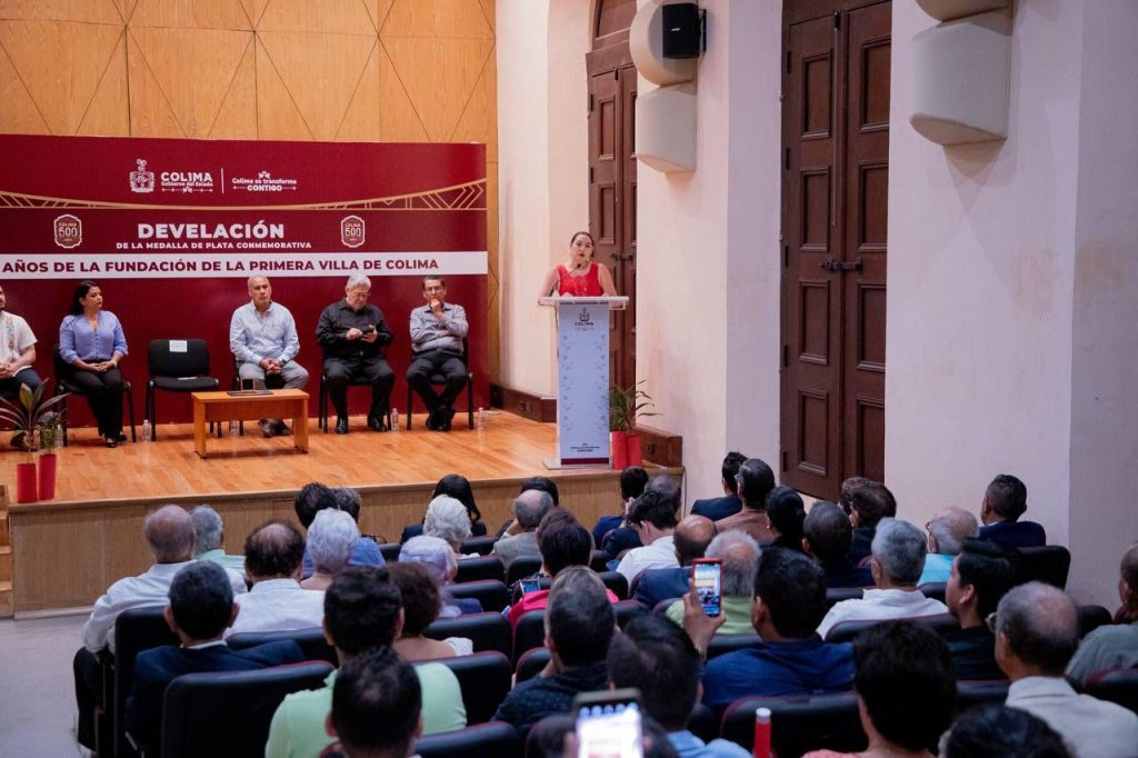 La gobernadora de Colima, Indira Vizcaíno Silva, develó la medalla de plata conmemorativa “500 años de la Fundación de la primera Villa de Colima”, evento que se realizó en Palacio de Gobierno.