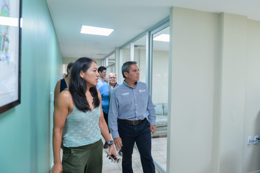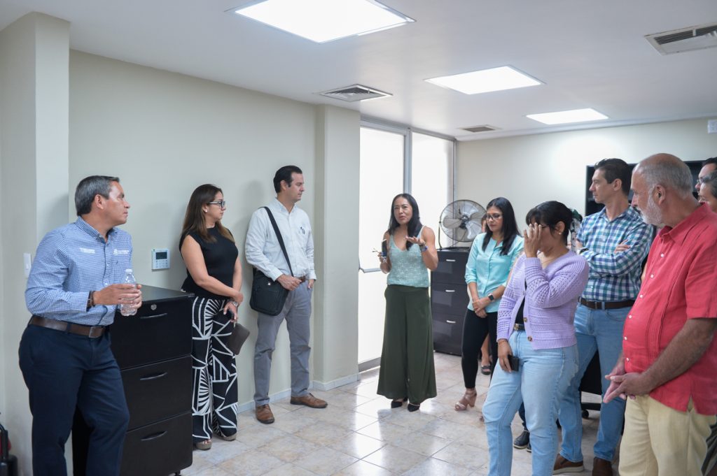 En el corte de listón acompañaron al Rector: la coordinadora general Administrativa y Financiera, Erika Ulibarri; la directora general de Recursos Materiales, Luz María Urzua; la tesorera, Jessica Gabriela Morales y el delegado de Colima, Juan Diego Gaytán.