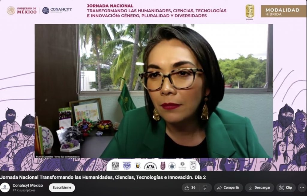 Dos universitarias participaron en la jornada nacional “Transformando las humanidades, ciencias, tecnologías e innovación: género, pluralidad y diversidades”, que organizaron el Consejo Nacional de Humanidades, Ciencias y Tecnologías (Conahcyt) y el grupo “Mujer y Ciencia” de la Universidad Nacional Autónoma de México (UNAM).