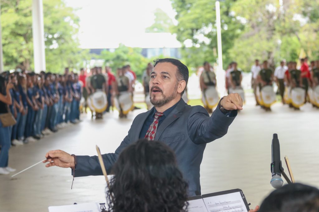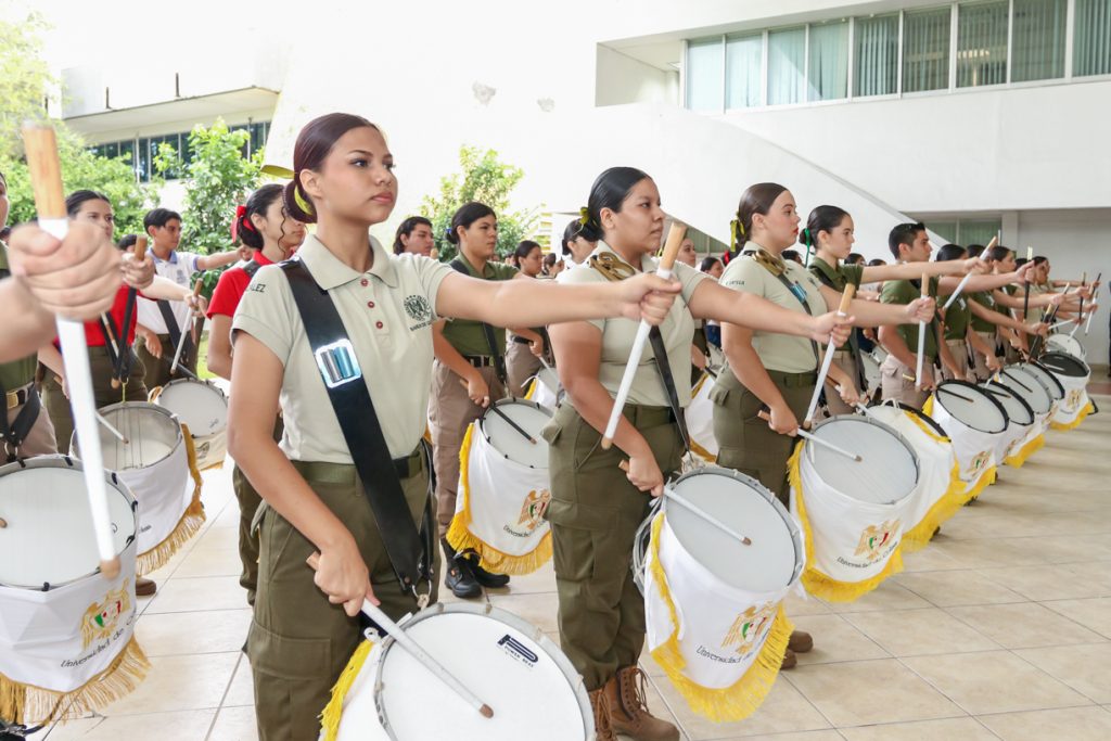 Llamaron la atención, por su entusiasmo y entrega, las y los integrantes de una gran banda de guerra conformada por estudiantes de los bachilleratos 1, 2, 4, 13, 15, 17, 18, 25 y 34. Gran parte de la organización y desarrollo de la ceremonia estuvo a cargo de docentes y alumnos de la Facultad de Ciencias de la Educación.
