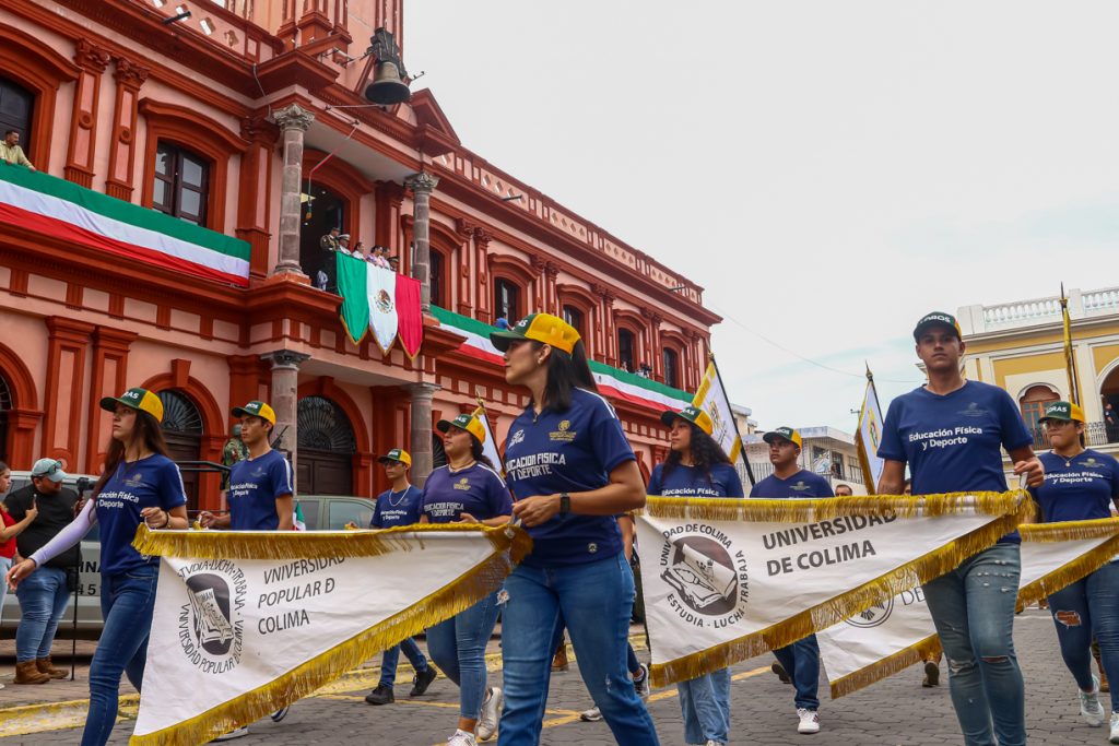 Por la mañana, en el Parque Hidalgo, la Universidad de Colima, a través de Dr. Mario Ramírez Archila, se sumó a la ceremonia previa al desfile de la Independencia. Además, en todos los desfiles realizados esta mañana en los municipios del estado, participaron alumnos y alumnas de esta casa de estudios.