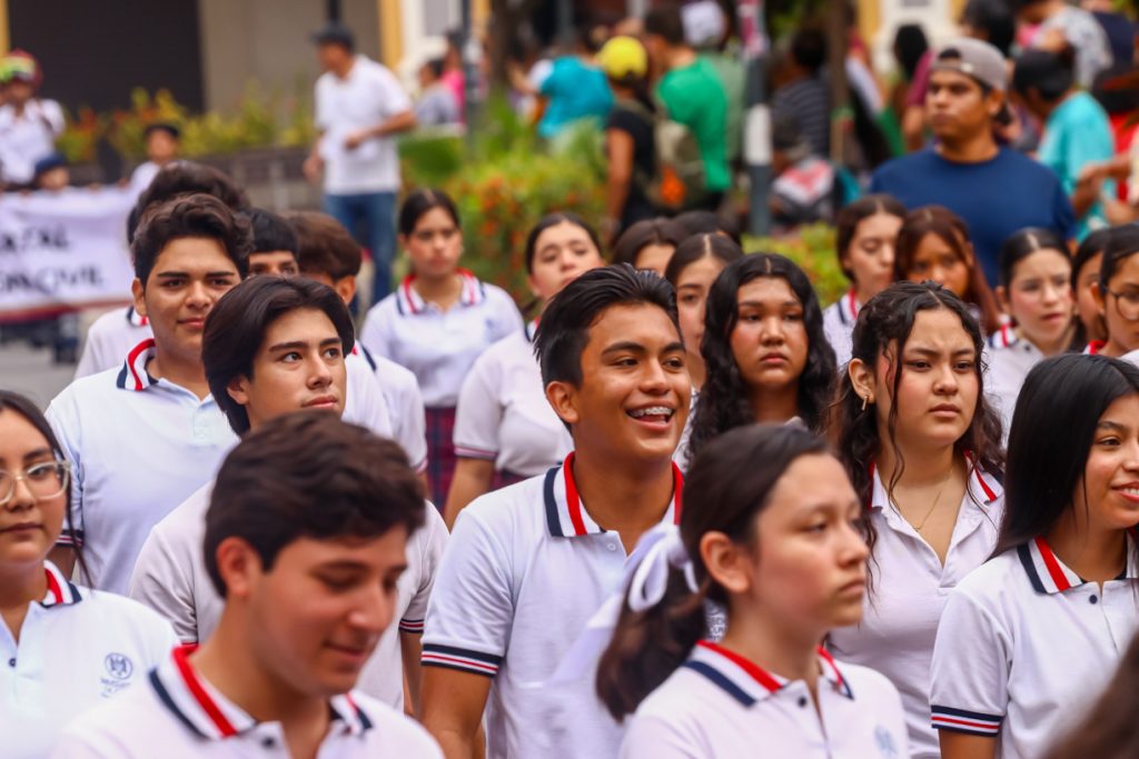 Durante el desfile cívico militar de este lunes 16, un bloque de 570 universitarios y universitarias marchó con orgullo, portando banderines y estandartes que representan la rica historia y los valores de la institución. Cada uno de los bachilleratos participantes mostró su identidad y logros.
