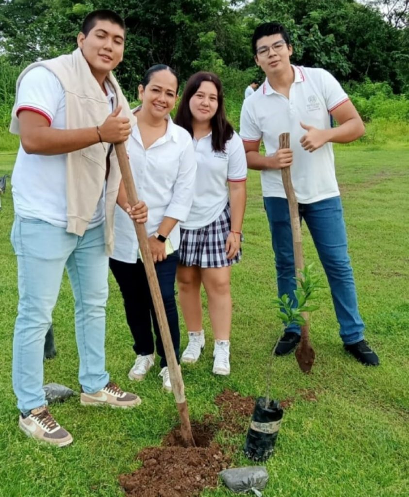 Estudiantes de nuevo ingreso, docentes y personal administrativo se unieron a esta noble causa plantando 99 árboles de diversas especies, como guayabilla, limón, nance, rosa morada, carambolo, cubano y guayabo.