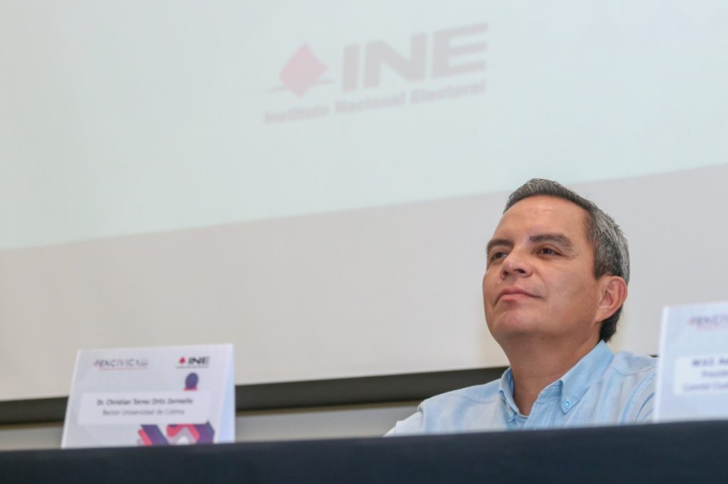 El evento estuvo encabezado por Ana Margarita Torres Arreola, vocal ejecutiva de la Junta Local Ejecutiva del INE en Colima; Christian Jorge Torres Ortiz Zermeño, Rector de la UdeC; Adolfo Núñez González, secretario de Educación y Cultura; Arnoldo Cortés Navares, presidente del consejo directivo del Comité Ciudadano de ¿Cómo vamos? Colima; Juan Ramírez Ramos, presidente provisional del IEE; y Cecilia Barragán González, de la Junta Local Ejecutiva del INE.