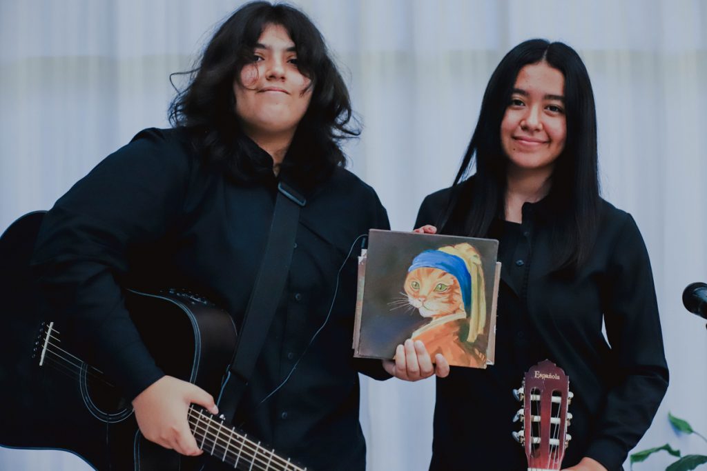La agrupación Azul Celeste está integrada por Montserrat García Vera y Natalia Yamile Castellanos Munguía, estudiantes del taller de guitarra del CUBAM, dirigidas por el maestro Hugo Quintero.