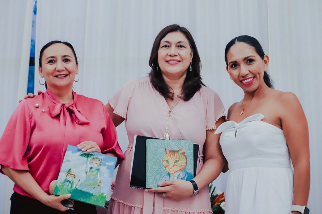 Para finalizar el evento, las maestras, junto a Nohema Larios, directora del CUBAM, realizaron una dinámica para regalar libros al auditorio.