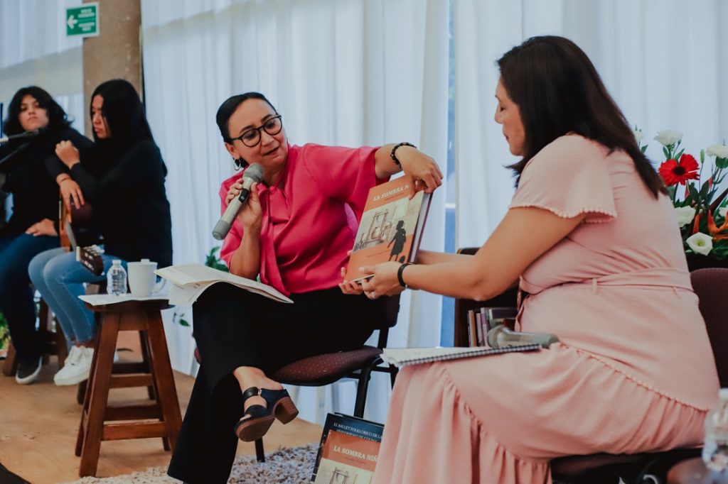 Para visibilizar y celebrar a las mujeres que escribe, las universitarias Ana Karina Robles Gómez, directora general de Publicaciones; y Ada Aurora Sánchez Peña, investigadora y docente de la Facultad de Letras y Comunicación (Falcom), realizaron una lectura en voz alta dentro del programa “Leamos a Mujeres”, en el Centro Universitario de Bellas Artes Manzanillo (CUBAM).