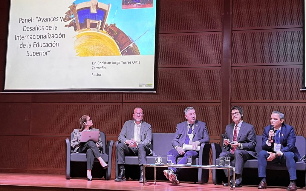 Christian Torres Ortiz compartió el panel con el Doctor Guillermo Tamarit, rector de la Universidad Nacional del Noroeste de la Provincia de Buenos Aires, Argentina; el Doctor José Leonardo Valencia, rector de la Fundación Universitaria del Área Andina en Colombia, y con el Doctor Lawrence Schovanec, rector de la Texas Tech University, en Estados Unidos.