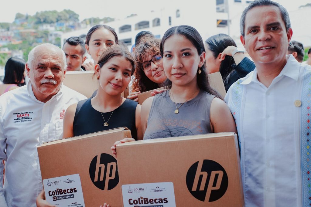 Este sábado por la mañana, Christian Torres Ortiz Zermeño, Rector de la Universidad de Colima, acompañó a la gobernadora Indira Vizcaíno Silva en la entrega de 2,255 laptops del proyecto ColiBecas, que beneficiarán a estudiantes del nivel superior, en acto realizado en la Plaza Juárez del Municipio de Manzanillo.