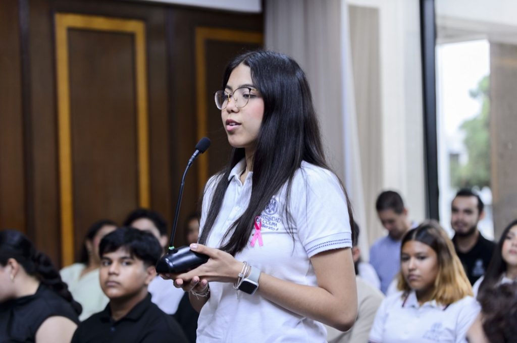 Antes de ceder la palabra a las y los líderes estudiantiles, les invitó a convertirse en ejemplo. “Sean líderes positivos porque ya tienen la confianza, el apoyo y la expectativa de sus comunidades respecto a lo que harán al frente de las Sociedades de Alumnos, por lo que trabajar en equipo es vital y fundamental”, enfatizó.