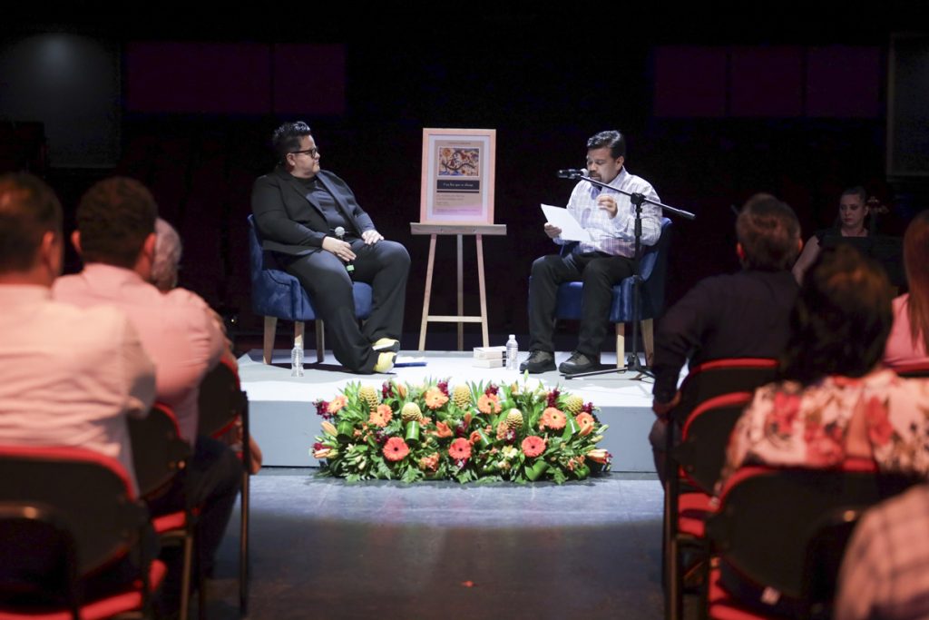 En un evento sin protocolos, orgánico, celebrado en pleno escenario del Teatro Universitario, el escritor, poeta y académico Rogelio Guedea, con la guía y las preguntas de Zeydel Bernal, presentó uno de sus libros más ambiciosos Una luz que se alarga. El poema en prosa latinoamericano, una coedición de la Universidad de Colima y la UNAM.