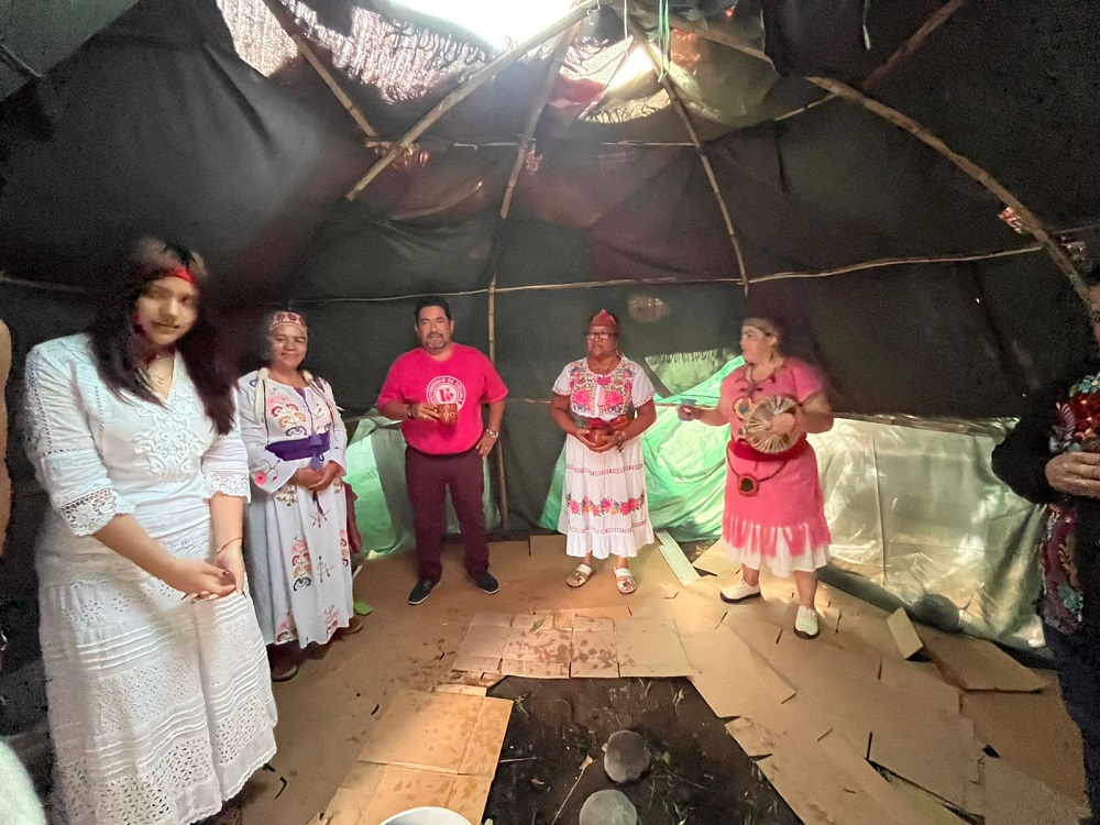 Además, hubo demostraciones de prácticas ancestrales como la danza de los morenos, el temazcal y la tradicional ceremonia del enroso, exhibieron tambores y sonajas, máscaras de Suchitlán y tejidos, elaboraron bebidas a base de café y cacao y mostraron trabajos de piedra labrada, herbolaria y comida tradicional.