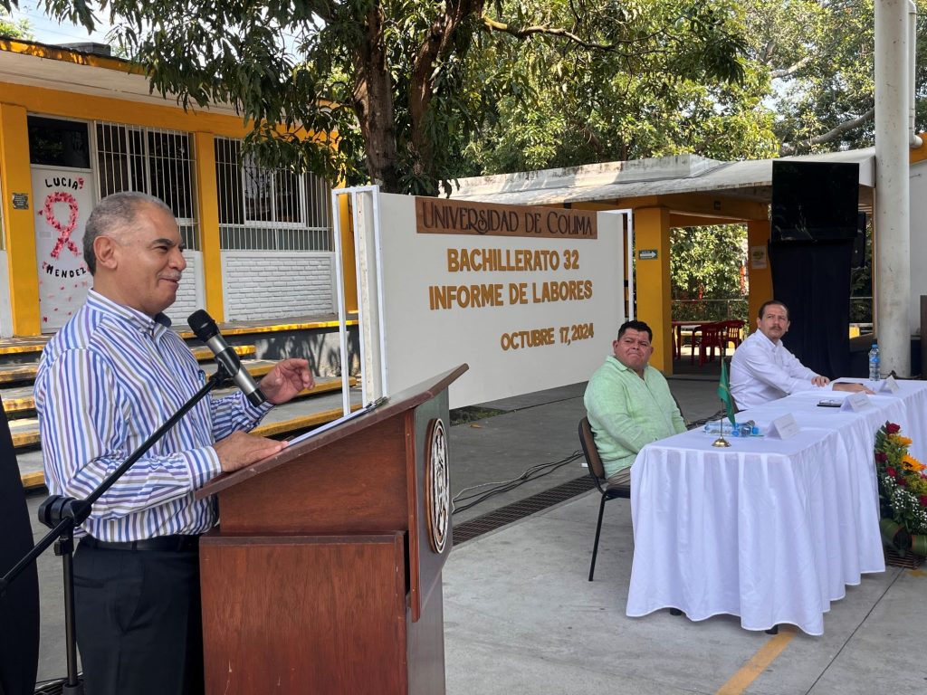 Durante su intervención, el delegado de Villa de Álvarez, Adrián López Virgen, quien acudió en representación del rector Christian Torres Ortiz Zermeño, reconoció el trabajo realizado durante el año, destacando el incremento en los indicadores académicos y el compromiso del equipo del Bachillerato 32 con la formación integral de sus estudiantes. Además, elogió las actividades de intervención comunitaria y exhortó a la comunidad a seguir impulsando acciones de mejora que fortalezcan el orgullo universitario.