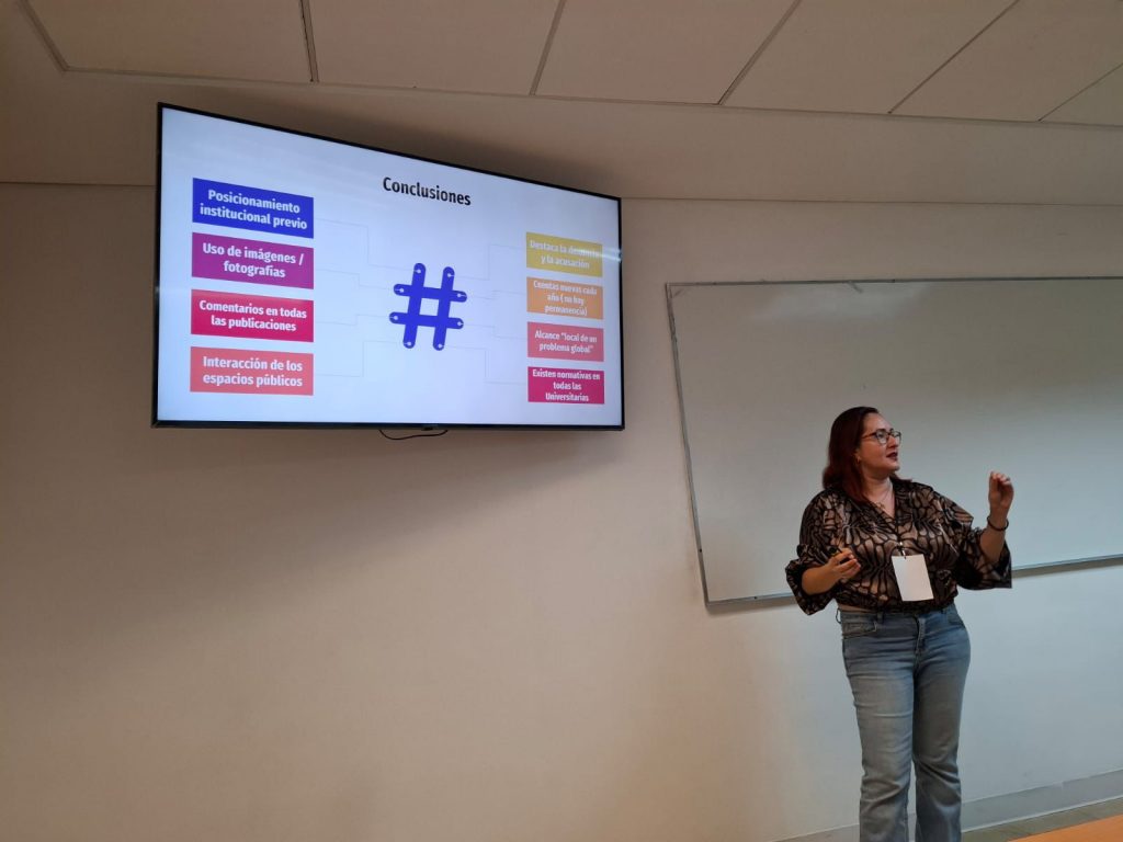En cuanto a la doctora Alma Celia Galindo Núñez, presentó su investigación “Narrativas universitarias en Instagram sobre el #8M, en tendederos digitales”. En su ponencia, analizó cómo los colectivos feministas en universidades mexicanas utilizan redes sociales para visibilizar la violencia de género. Destacó que un 80% de las publicaciones estudiadas corresponden a denuncias de violencia ejercida por estudiantes.