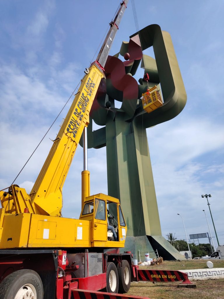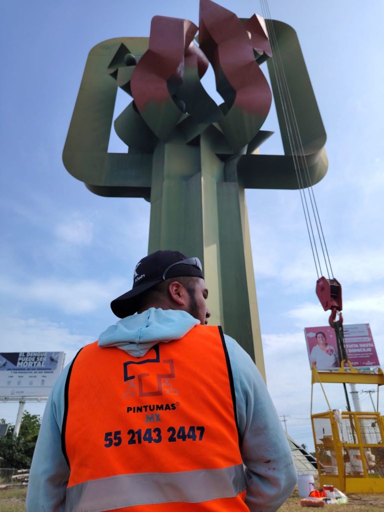 Este proyecto, que busca devolver la vitalidad a la obra, comenzará con la aplicación de pintura primaria de color rojo, diseñada para evitar la corrosión. Garrido explicó que se utilizarán aproximadamente 7 cubetas de 20 litros para esta base primaria (140 litros), la cual permanecerá en la escultura por varios días mientras se seca.