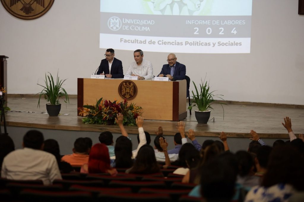 En un acto de rendición de cuentas, Cristina Romero Michel, directora de la Facultad de Derecho, y Enrique José Chaires Velasco, director de la Facultad de Ciencias Políticas y Sociales, compartieron los avances, logros y metas que han alcanzado en el último año, en los auditorios de su respectivo plantel.