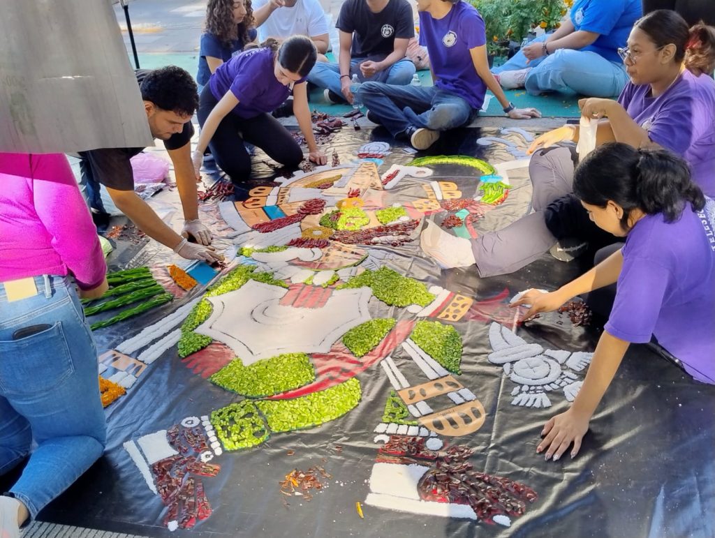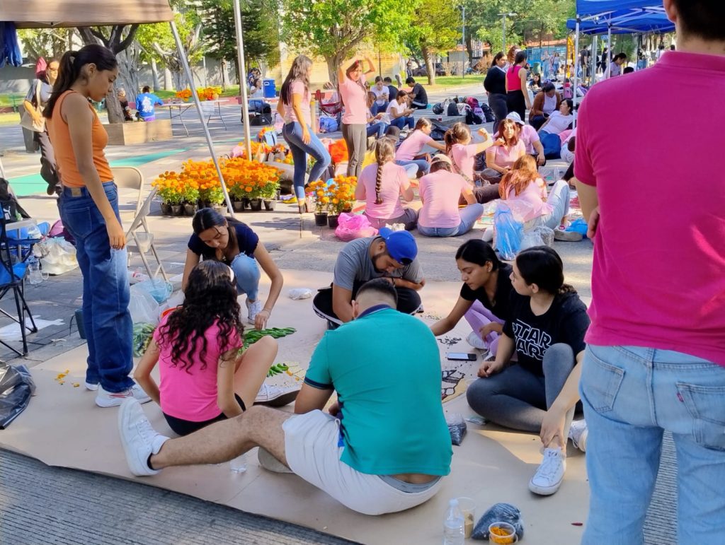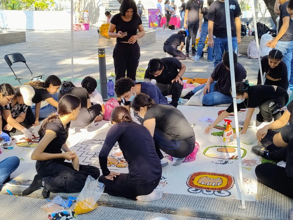Los diferentes grupos de alumnos formaron equipos y se cooperaron para adquirir los materiales que se están utilizando. Además, los diseños de los altares de muertos están inspirados en figuras míticas como Quetzalcóatl, calaveras y perros.