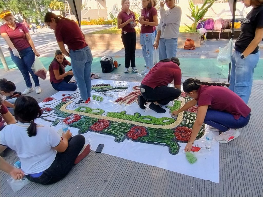 Todas las figuras están compuestas de granos, sin el uso de pinturas, lo que permite que las alumnas y los alumnos muestren sus habilidades creativas.