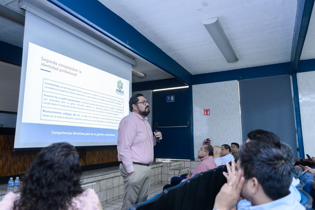 En el marco del Diplomado en Gestión Escolar y Liderazgo Educativo en el Nivel Medio Superior, en el que participan gestores educativos universitarios, Joel Nino, secretario general de la Universidad de Colima, impartió la conferencia “Competencias directivas para la gestión universitaria”.