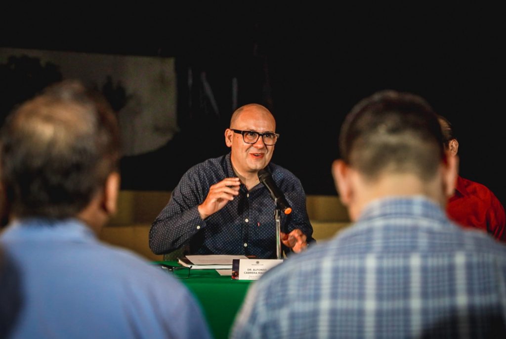 Raúl Arámbula, al tomar el micrófono, agradeció el apoyo y respaldo brindado por el Rector Christian Torres Ortiz para la publicación de la obra y reconoció los esfuerzos institucionales para convertir a la Casa del Volcán en un referente de divulgación científica para los estudiantes y la sociedad en general.