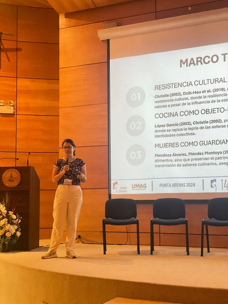 La estudiante de la maestría en Arquitectura, Cinthia Noemí Cárdenas Tirado habló de la “Cocina tradicional de Zapotiltic, Jalisco, México y las guardianas de la arquitectura patrimonial”, donde analiza los desafíos relacionados con la conservación arquitectónica, la perspectiva de género y la función culinaria.