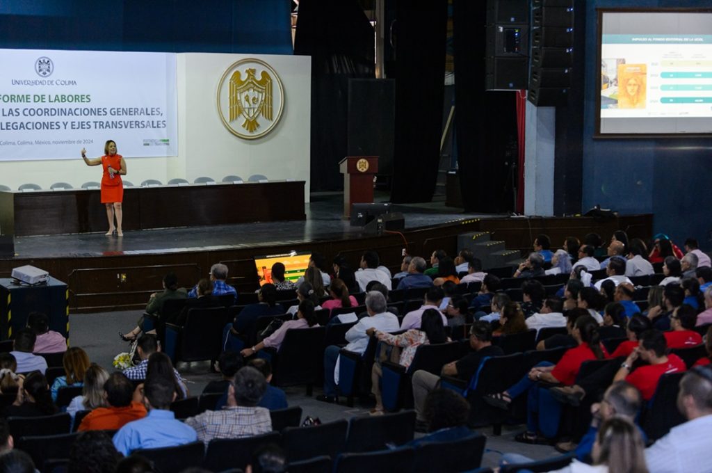 En el Paraninfo Universitario, como parte de las jornadas de rendición de cuentas de coordinaciones, delegaciones y ejes trasversales, Érika Mercedes Ulibarri Ireta, coordinadora General Administrativa y Financiera, a través de su informe transparentó el buen uso de los recursos que recibe la Universidad de Colima (UdeC) por parte de los Gobiernos federal y estatal. El Rector Christian Jorge Torres Ortiz Zermeño, funcionarios y directivos atestiguaron este informe.