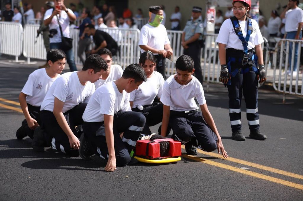 De acuerdo con un comunicado de prensa, los titulares de los 3 poderes del estado, encabezados por la gobernadora Indira Vizcaíno, encabezaron el presídium para observar el desfile que comenzó en la calzada Pedro A. Galván, a la altura del Parque de la Piedra Lisa, recorriendo hacia el sur y doblando por la calle Francisco I. Madero hasta culminar en el jardín Núñez, en el centro histórico de la capital colimense.