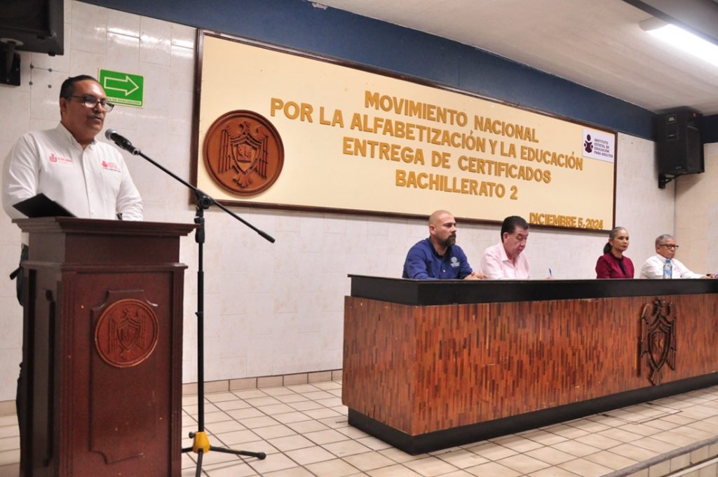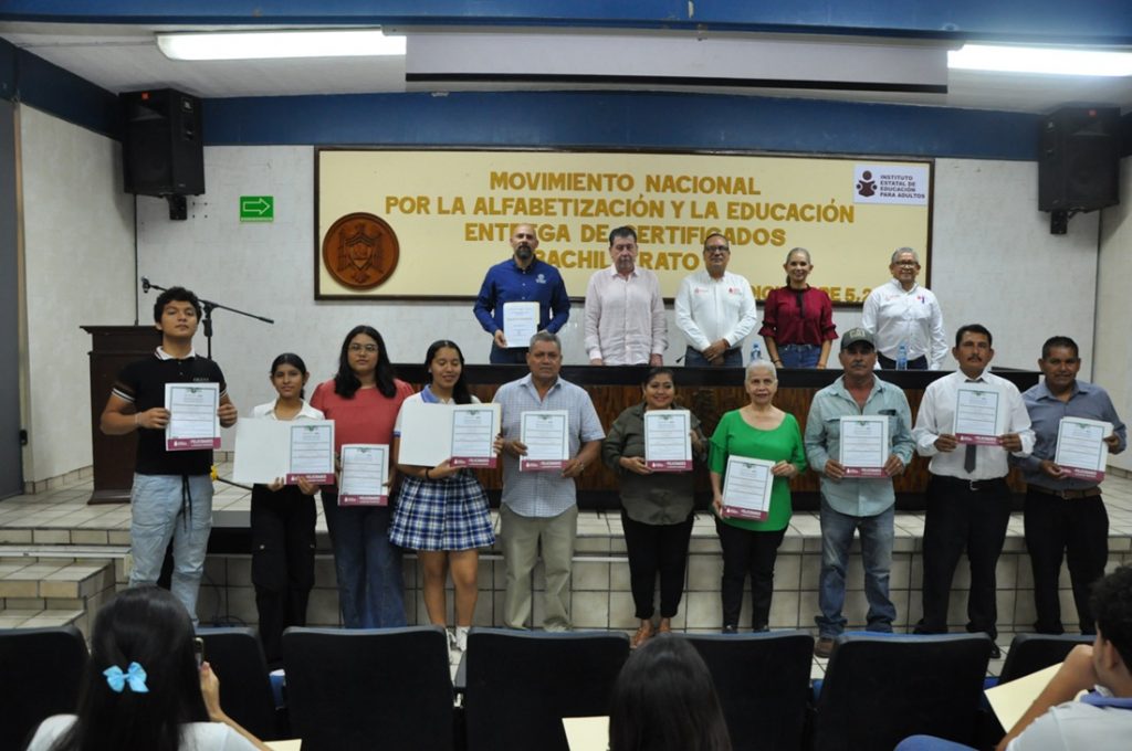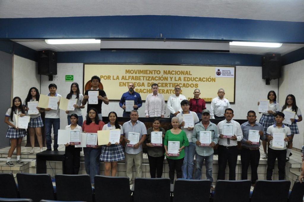 De febrero a diciembre de 2024, 19 estudiantes de este plantel participaron en el Movimiento Nacional por la Alfabetización y la Educación. “Gracias a ustedes, hoy tenemos 14 personas egresadas de primaria y 17 de secundaria, un total de 31, que recibieron su certificado. Gracias por apoyar al país, a Colima y a las personas adultas con su educación”, enfatizó Rodarte.