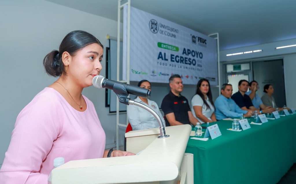 La egresada Ana Cristina Gómez Rodríguez, en nombre de las y los beneficiados, agradeció a la UdeC, “no solo por brindarme una educación pertinente y de calidad, sino por alentarme a salir de mi zona de confort, enseñarme a superar dificultades y por crear oportunidades únicas para mi crecimiento personal y profesional. Hoy, al mirar atrás, me siento afortunada, pues estos pequeños o grandes logros toman un mayor significado cuando reconocen nuestro esfuerzo y nos alientan, tanto a finalizar con éxito nuestros estudios como a alcanzar el tan anhelado título universitario, símbolo de nuestro conocimiento y habilidades adquiridas”.