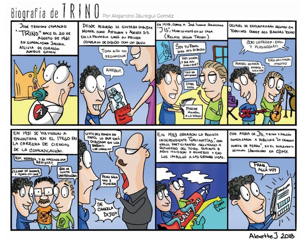 El libro incluye a José Guadalupe Posada, Ernesto García Cabral, Gabriel Vargas, Bismarck Mier, Gaspar Bolaños, Joaquín Cervantes Bassoco, Antonio Arias Bernal, Abel Quezada, Jorge Carreño Alvarado, Leopoldo Zea Salas, Alberto Isaac, Eduardo del Río “Rius”, Helio Flores, Rogelio “Naranjo”, Sergio Aragonés, Magú, Sergio Arau, José Ignacio Solórzano “Jis”, José Trinidad Camacho “Trino”, Antonio Helguera, Sixto Valencia, Cecilia Pego, José Hernández, José Ladrön, Raúl Treviño y Tania Camacho.
