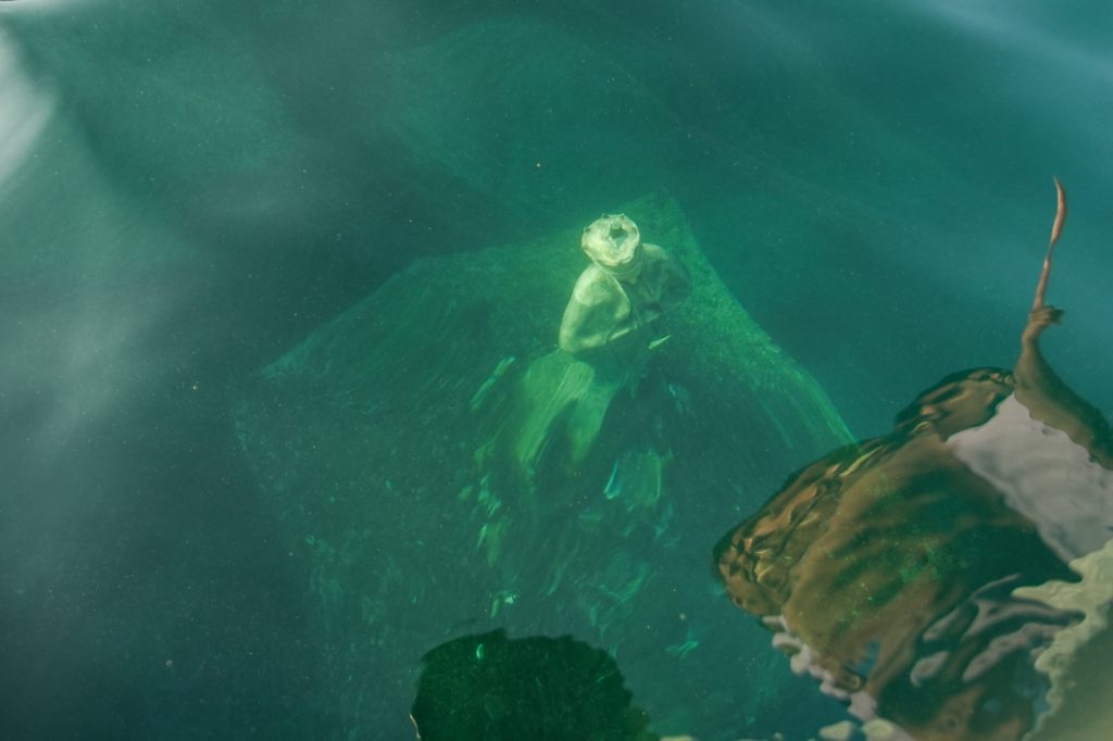 Algunos de los fieles católicos y pescadores se lanzaron al mar para limpiarla, saludarla, tocarla o agradecerle por todas las bendiciones.