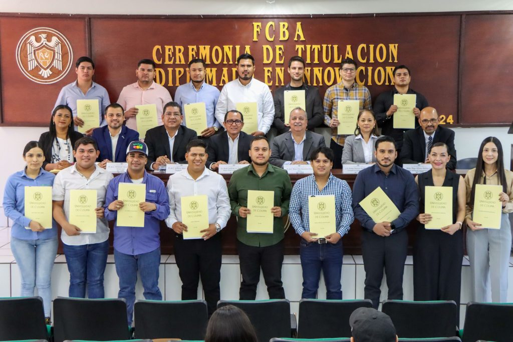 En un acto académico realizado en la Facultad de Ciencias Biológicas y Agropecuarias (FCBA) de la Universidad de Colima (UdeC), Campus Tecomán, 17 egresados y egresadas tomaron protesta como ingenieros agrónomos. De ellos, 12 se titularon mediante la modalidad de actualización de conocimientos a través del Diplomado en Innovación Agrícola, mientras que 5 lo lograron al aprobar el Examen General para el Egreso de la Licenciatura (EGEL).