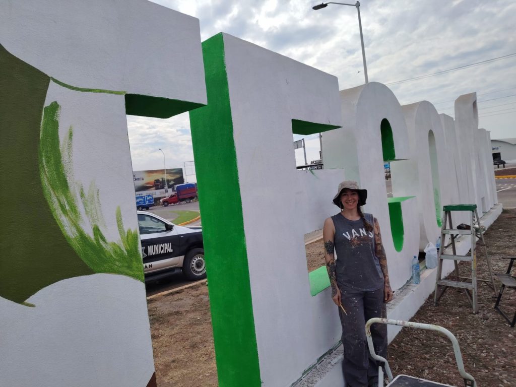 La artista colimense Azu Ibarra inició un proyecto emblemático para la ciudad de Tecomán: el diseño y pintura de las letras monumentales que recibirán a los visitantes en la entrada principal del municipio.