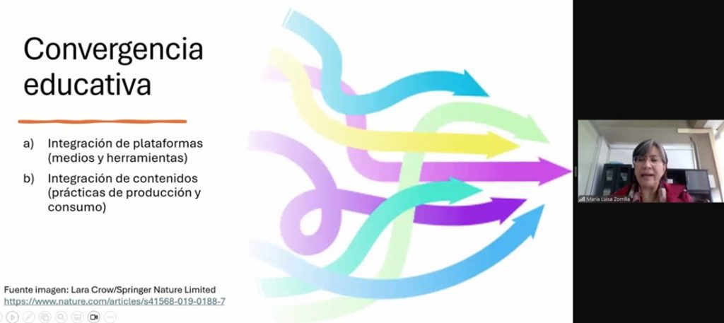 Sobre la convergencia educativa, dijo que ésta se refiere a medios y herramientas en cuanto a interoperabilidad entre plataformas y a su integración. También se da otro tipo de integración relacionado con contenidos educativos. “Esto significa que estudiantes y profesores podemos estar integrando de forma más dinámica los contenidos, tanto en la producción como en el consumo”, mencionó.