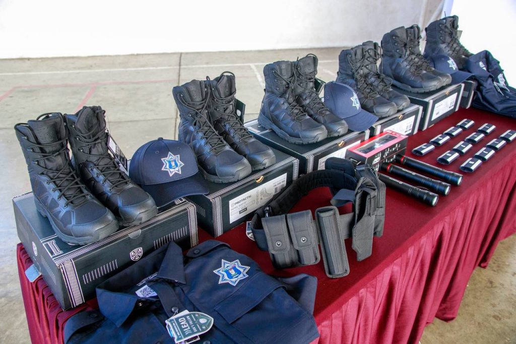 Mientras tanto, en Tecomán, la inversión fue de 3 millones 386 mil 269 pesos, para entregar 202 botas, 404 camisas, 202 cinturones, 404 gorras, 404 pantalones, 404 insignias, 202 fornituras, 178 lámparas tácticas, 5 computadoras y 41 bastones retráctiles, detalla el boletín.