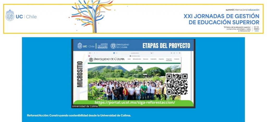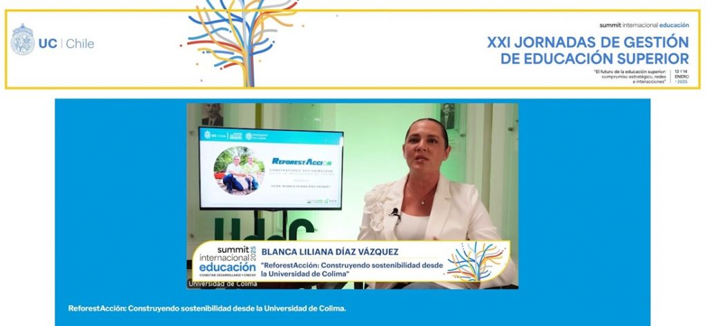 Al participar como conferencista en la XXI Jornada de Gestión en Educación Superior que organiza la Pontificia Universidad Católica de Chile, Blanca Liliana Díaz Vázquez, presidenta del Voluntariado de la Universidad de Colima (UdeC) presentó un ambicioso proyecto que está transformando el paisaje del estado: ReforestAcción, gracias al cual se plantaron más de 10 mil árboles en tan solo 2 meses.