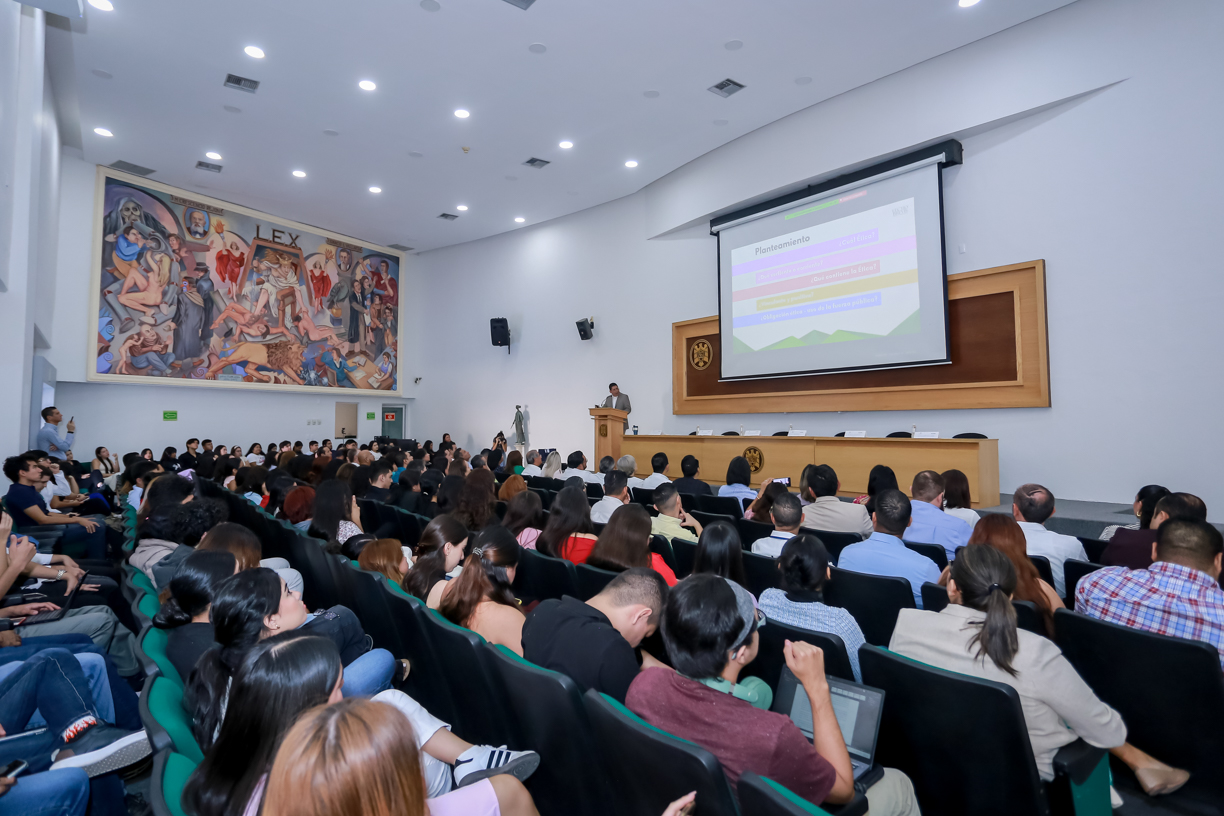 Durante su disertación, Luis Moreno abordó 3 momentos clave: un planteamiento general sobre la ética, un análisis hermenéutico de su evolución y una propuesta ontológica para su conformación en el contexto actual. Moreno señaló que, en el siglo XXI, los espacios universitarios, especialmente los de corte jurídico, buscan en la ética un sustento teórico y práctico para guiar la conducta humana. “La ética es un instrumento indispensable para discernir entre lo moralmente aceptable y lo degradante, entre el bien y el mal”, afirmó.