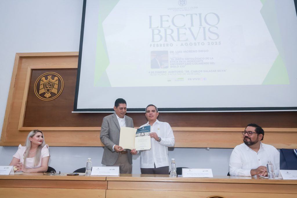 En el auditorio de la Facultad de Derecho de la Universidad de Colima, se llevó a cabo la Lectio Brevis titulada “El grito ontológico de la ética en el horizonte universitario colimense del siglo XXI”, que impartió el profesor Luis Moreno Diego. Este acto marcó el inicio formal del semestre en este plantel y contó con la presencia del Rector, Christian Torres Ortiz Zermeño, así como de autoridades académicas y estudiantes.